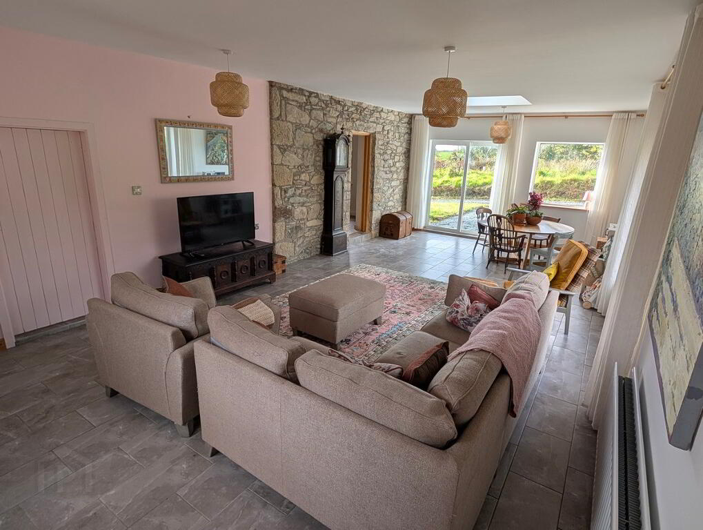 Accessed from the public road by a private, stone driveway this light filled farmhouse style residence has living accommodation extending to C. 143 sqm/1,539 sqft & comprising;