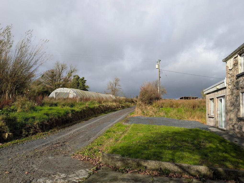 The property has C. 100 metres frontage onto the public road with lands laid out in 1, clearly defined parcel with a stream running through it. Along with the main driveway, the larger roadside field has its own gated access onto the road & an open sided covered animal pen (8.0 x 4.0). The lands are of typical quality for the locality and are mainly grazing but could be returned to meadow with some work.