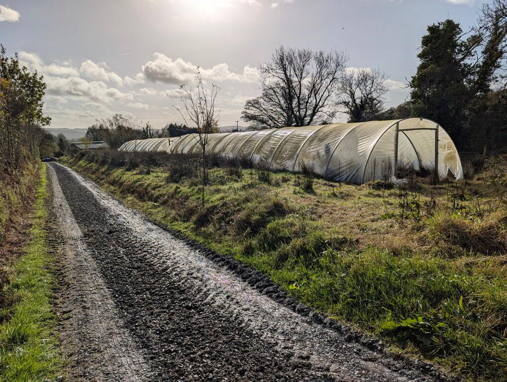 There are 2 larger fields behind the house. To the front of the house is a yard area providing ample parking. Leading from the yard to the road is the 3rd, narrow field with willow ring & 2 large, fully functional polytunnels.