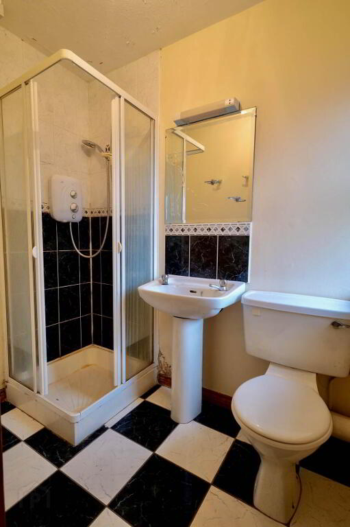 WC, WHB, electric shower, part tiled wall and tiled floor