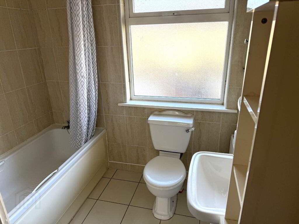 Fully tiled, Bath, WC, WHB, Electric shower over bath, Fitted cabinet