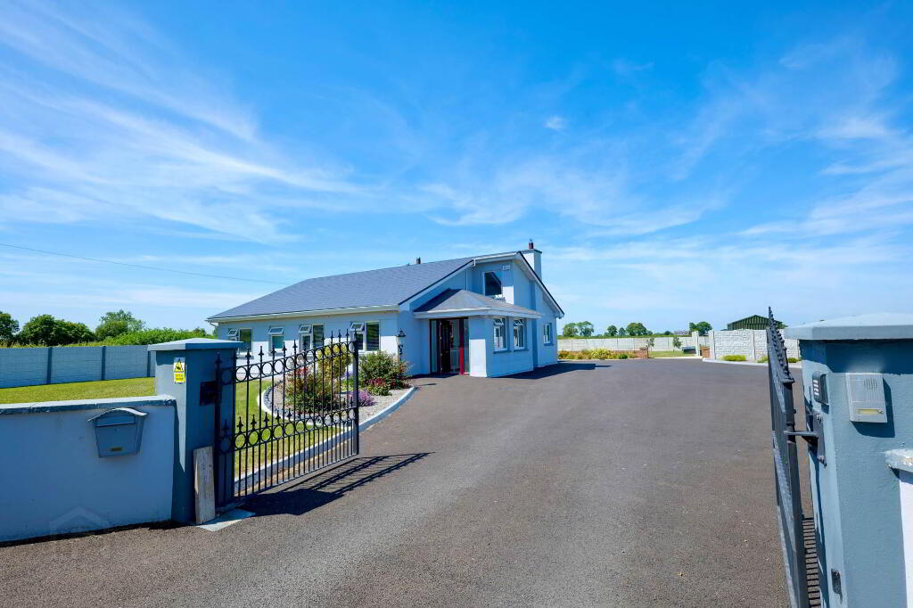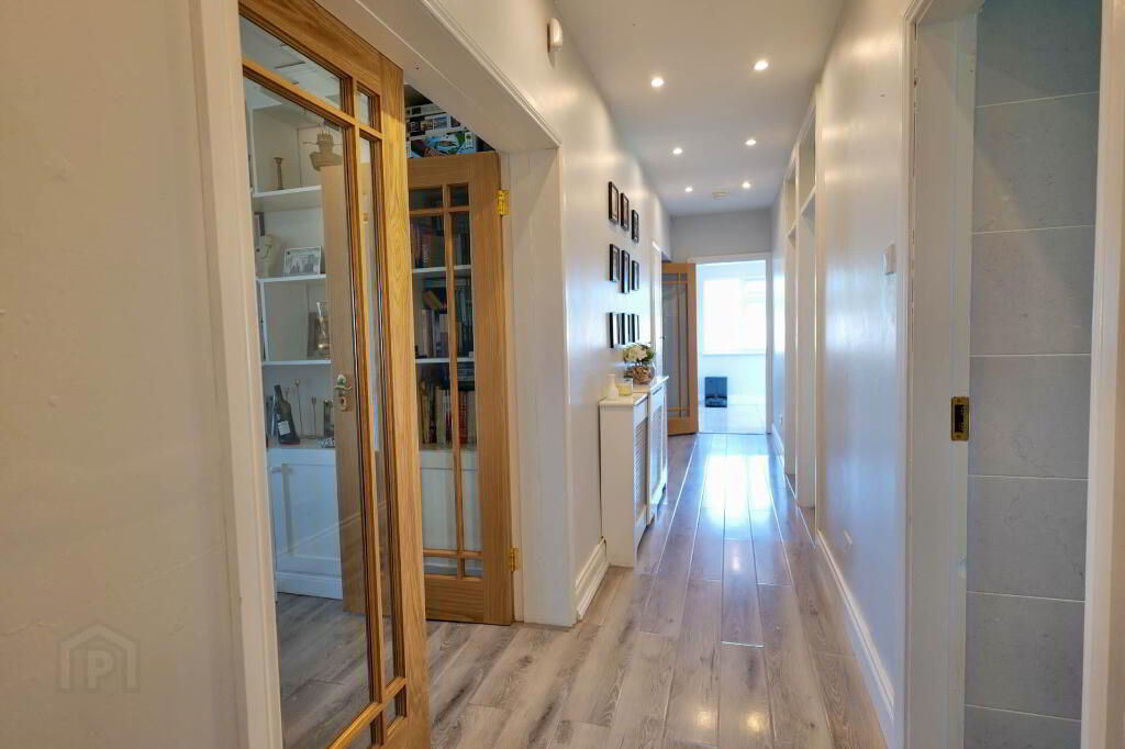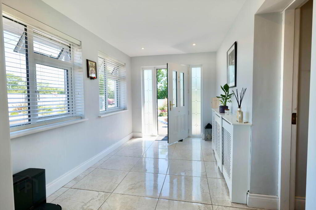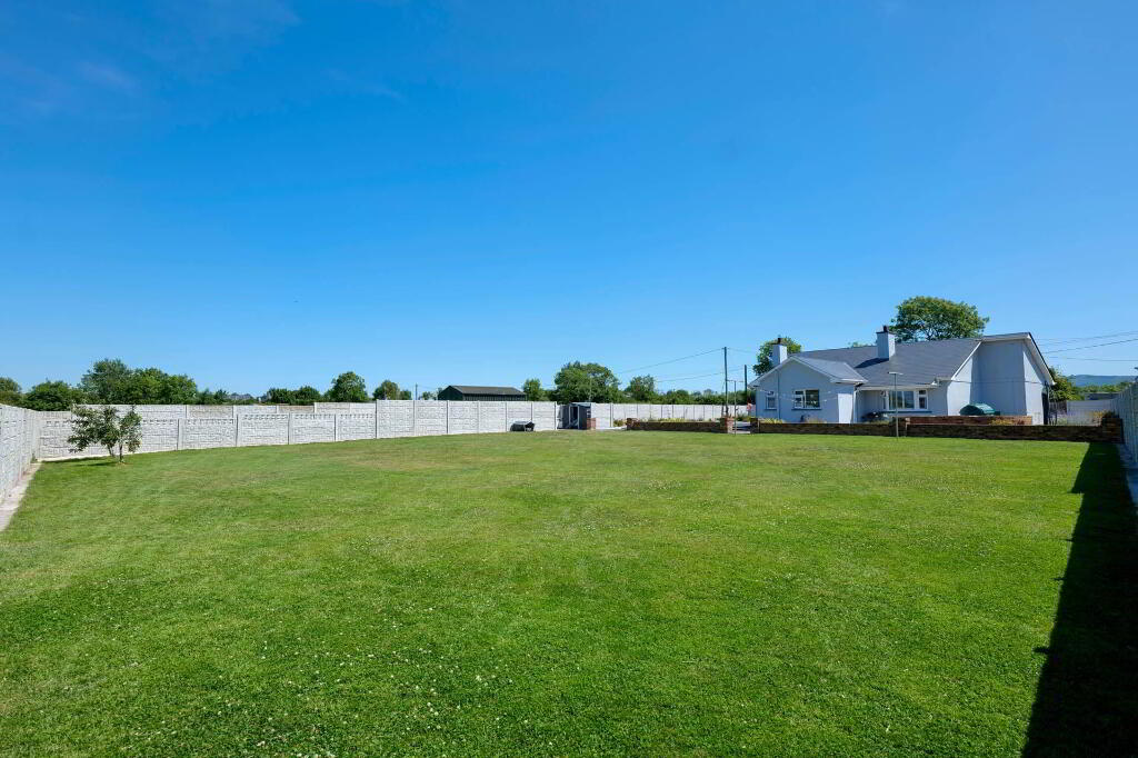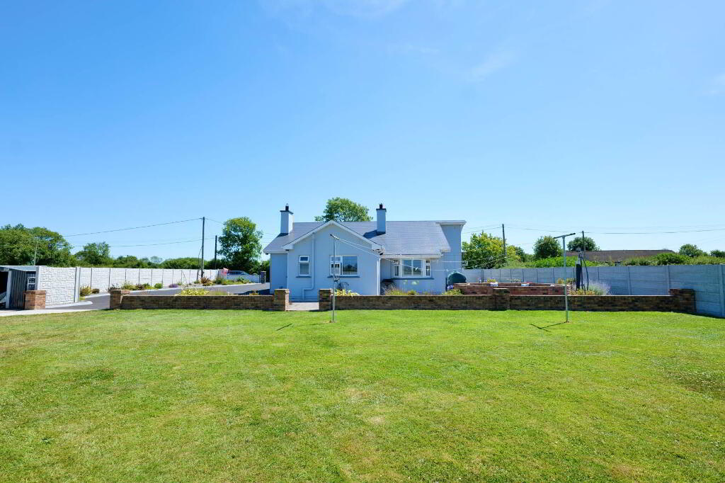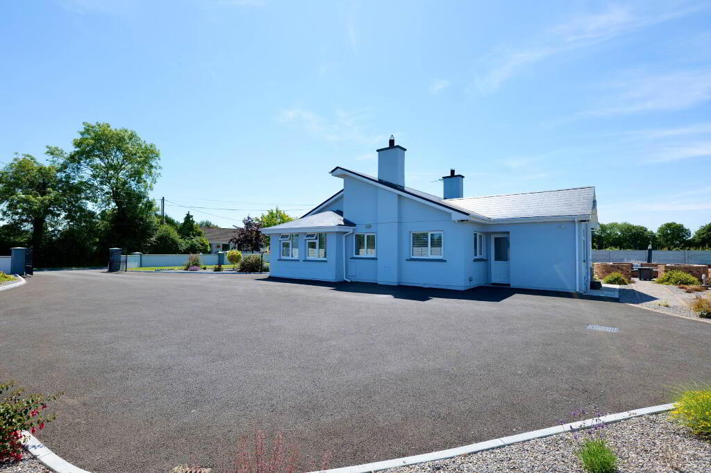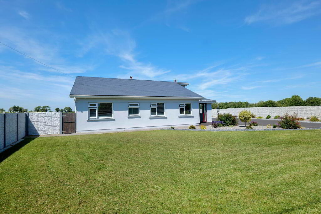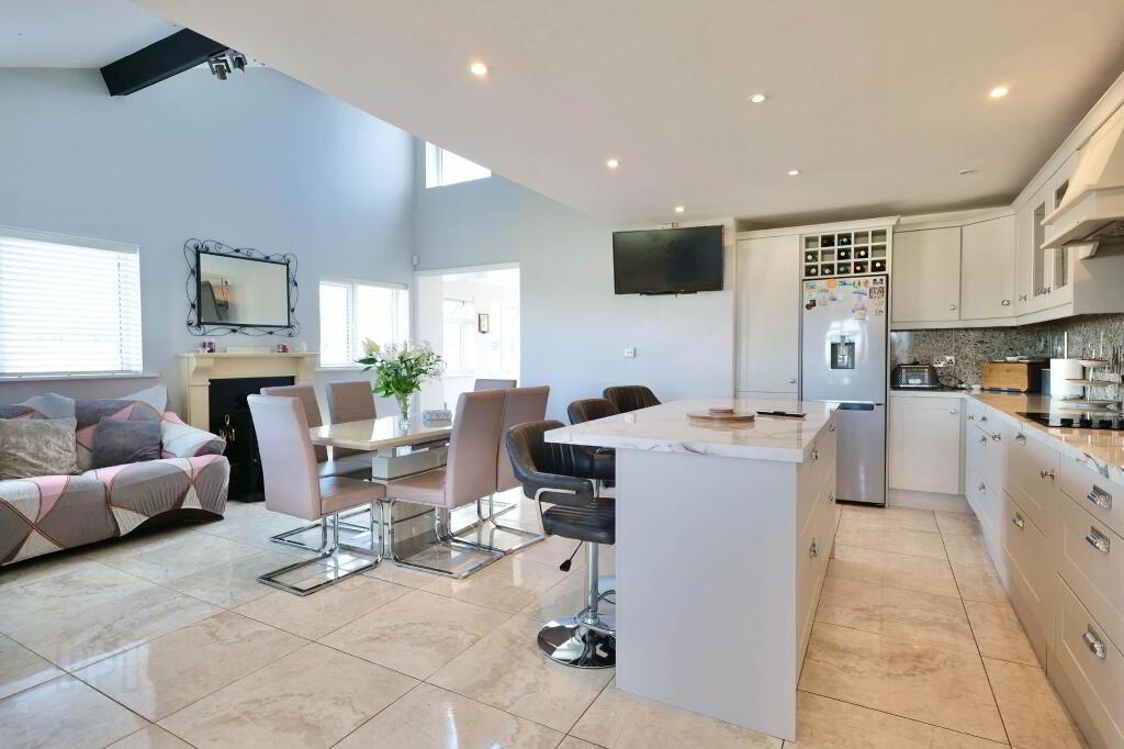 This superb property extends to 113.35 sqm and really has the wow factor from the moment you step over the threshold. On entering, viewers are greeted by a bright, spacious hallway with a tiled floor which leads to the open plan kitchen/dining/living area, the hub of the home. Presented on a tiled floor with a centre island, the extensive fitted kitchen offers an abundance of storage cabinets & worktop space. The adjoining utility area has further built-in storage, the appliances hidden from view, along with a guest WC and access to the rear garden. The living area is situated around a marble fireplace with a solid fuel stove under a vaulted ceiling. There is a separate sitting room with a bay window set around a marble fireplace with an insert stove, beautifully presented with built-in alcove units and a timber floor accessed by French doors from the hallway.
