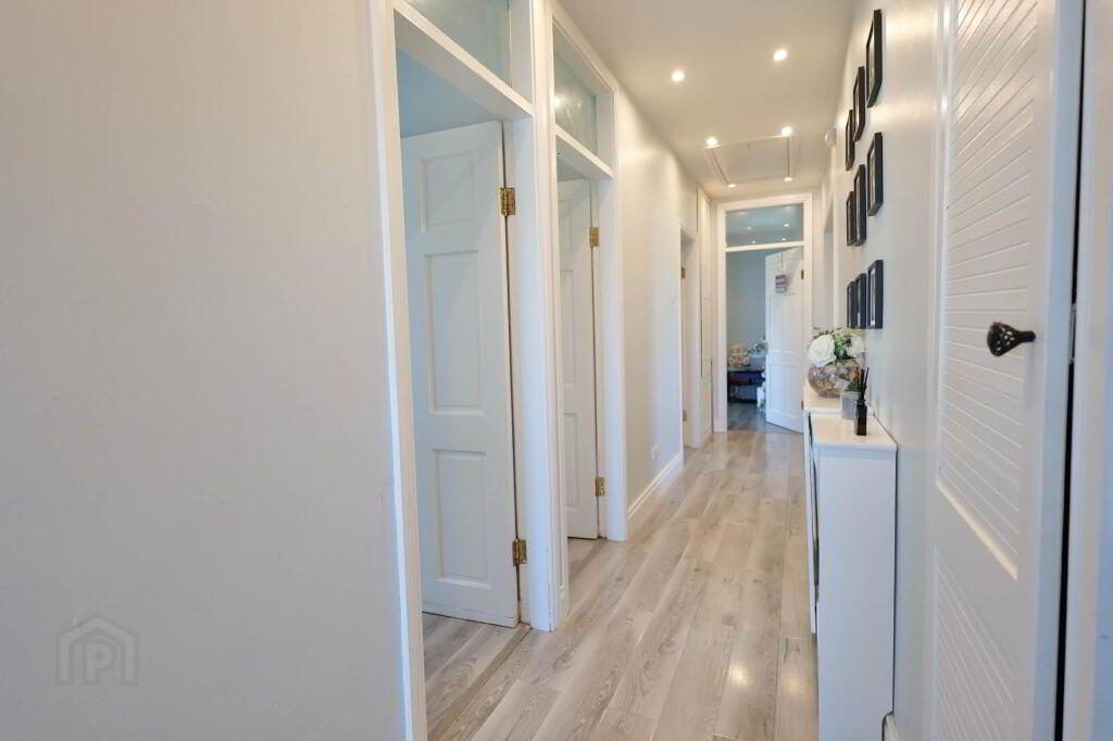 Timber floor, radiator with cover, recessed lights, access to attic via Stira stairs, hot press