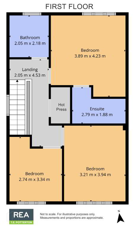 A shared family bathroom and hot-press complete the accommodation.