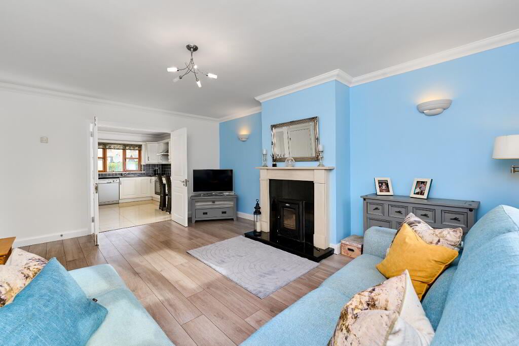 Stepping through the front door a welcoming tiled hallway greets you, turning right the main family living room is bright and spacious with insert solid fuel stove and double doors guiding through to large open plan kitchen diner. The ground floor of the property is bathed in natural light, helped greatly by southerly aspect kitchen windows.
