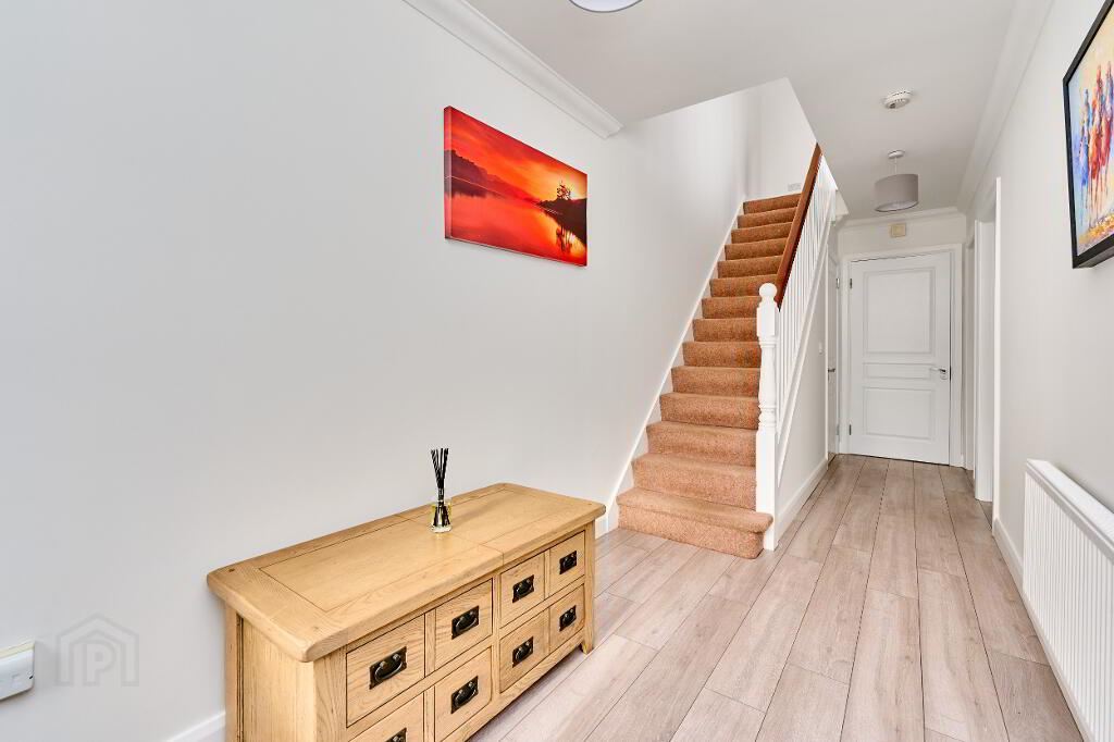 Carpeted staircase guides to first floor landing where one finds three generous bedrooms, the master of which benefits from a spacious ensuite. All three bedrooms have built in wardrobes and plenty of storage space.