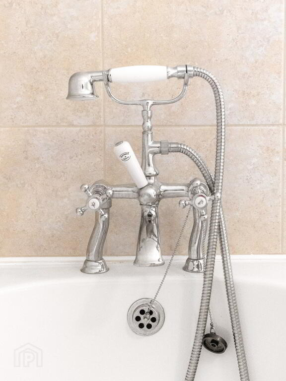 A wonderfully bright room with tiled flooring and excellent natural light. French doors open onto the garden with access through to the kitchen/dining area.
