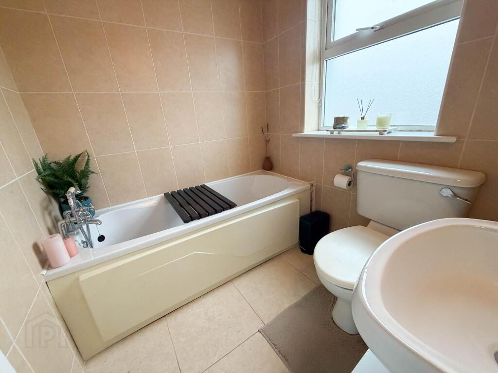 WC, WHB, Bath, Mirror with shaving light, and fully tiled