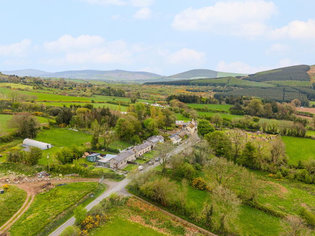 REA Dawson are delighted to present this charming semi-detached stone-built cottage for sale, ideally located in the picturesque village of Kilquiggan – a scenic hamlet set between Tullow and Shillelagh in the heart of West Wicklow.
