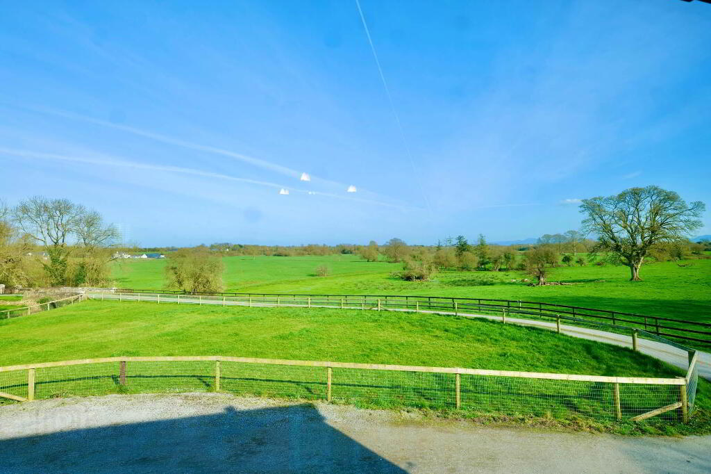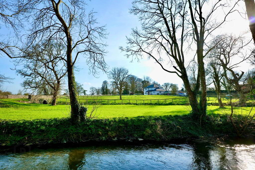 The property is set on beautifully maintained grounds and includes four stables and all-weather sand & wood chip turnout area, making it particularly appealing to horse enthusiasts. The home is approached via a sweeping, tree lined driveway with stud railing and is beautifully positioned along the Morning Star River. The surrounding landscape enjoys uninterrupted views across rolling farmland toward the Ballyhoura Mountains, creating a private and tranquil rural retreat.
