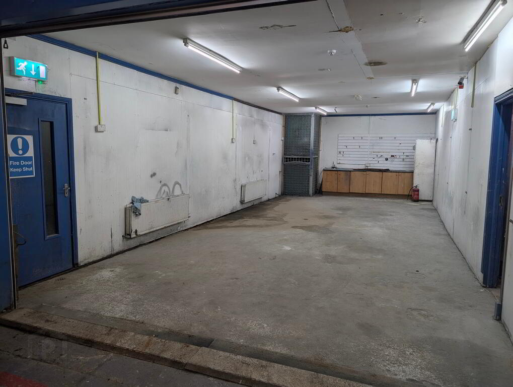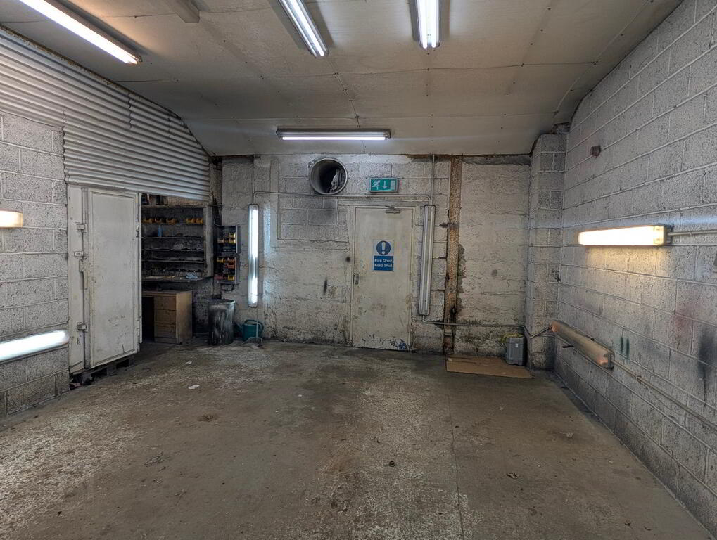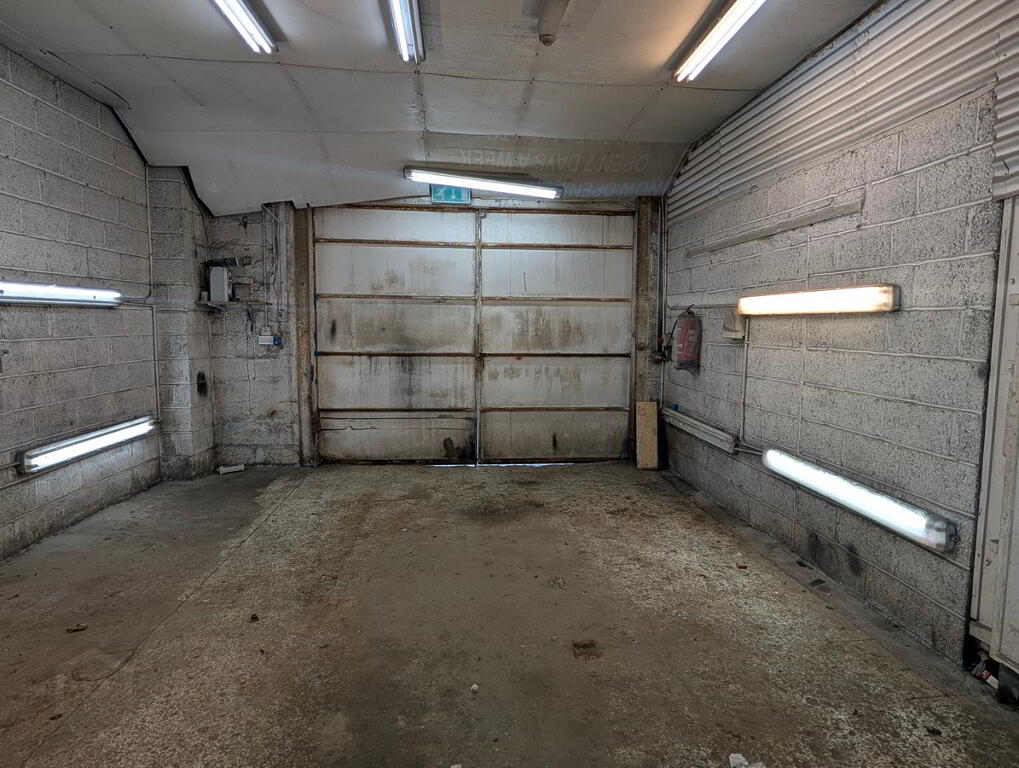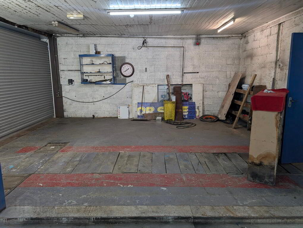 Bay 1 (5.4 x 6.2) with roller door and service pit.