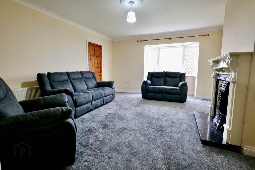 New carpet, bay window, open fire with feature surround, coving, French doors to sitting room