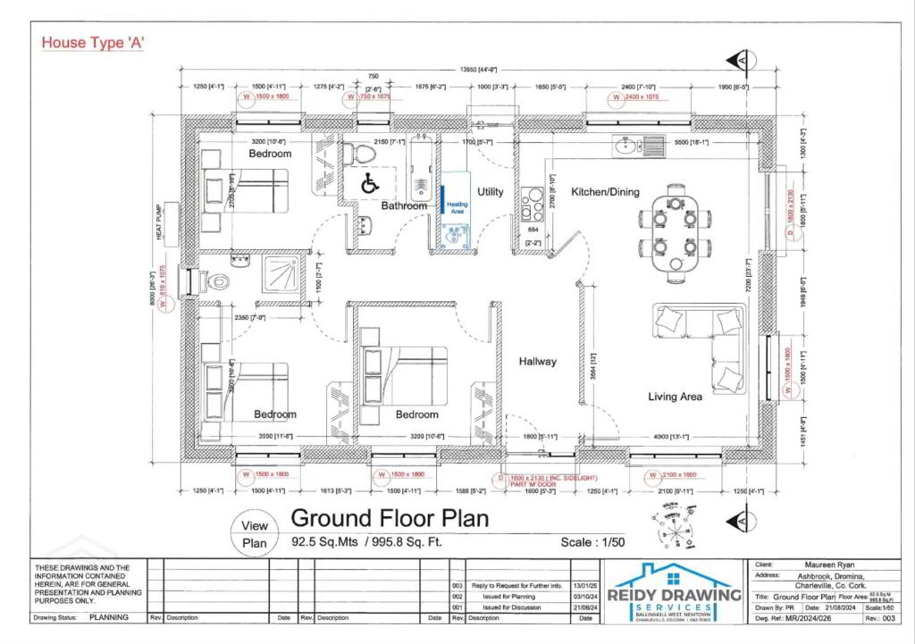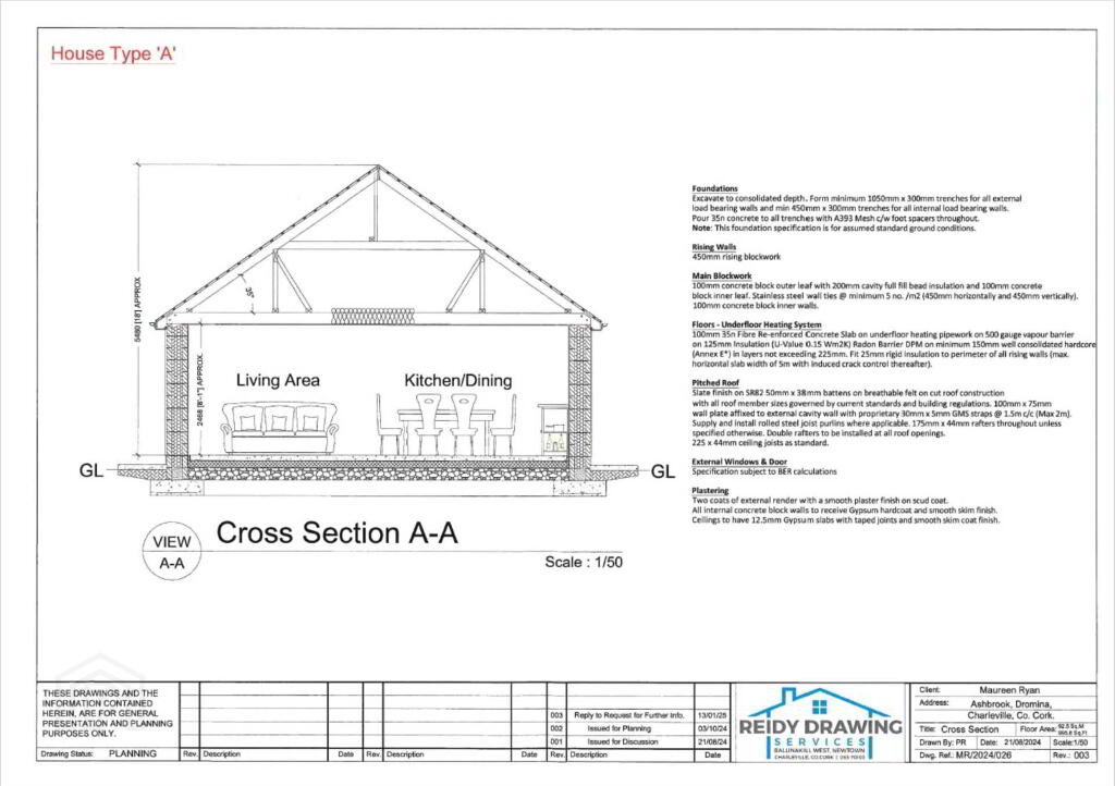 The proposed bungalows will comprise of entrance hallway, open plan kitchen/dining/living area, a utility room, three bedrooms - the master being en-suite along with a family bathroom. It is proposed that the properties will have an under floor heating system via a Heat Pump.