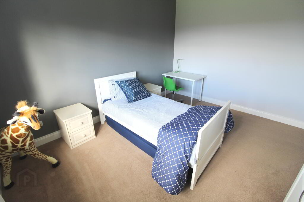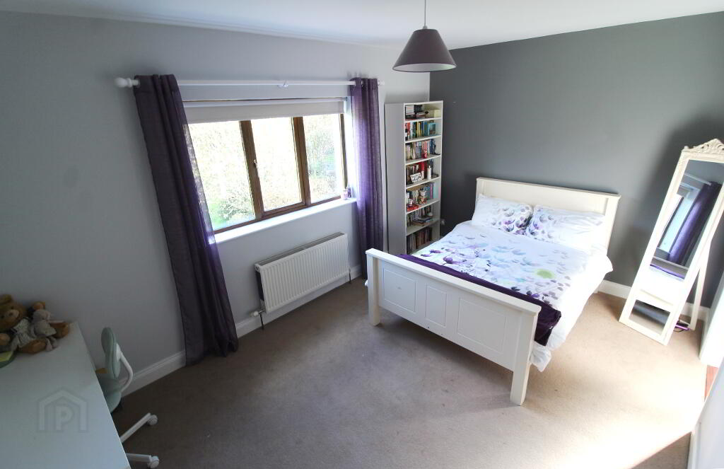 Large double bedroom which is carpeted, built in wardrobe, window to front gardens, radiator and power points. Ensuite 3.46 x 1.16 with shower, whb, wc, radiator, window, tiled flooring, part tiled walls, shaver light and mirror.