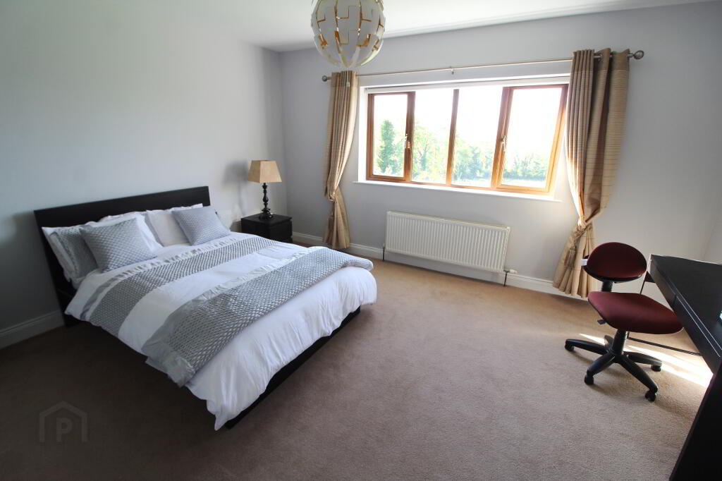 Large double room at rear of house overlooking River Shannon, carpeted, dressing room with built in storage and shelving, power points. Ensuite with tiled floor, tiled walls, shower, whb, wc, window.