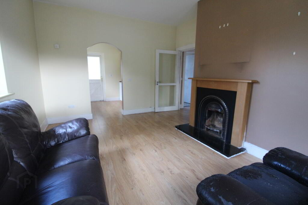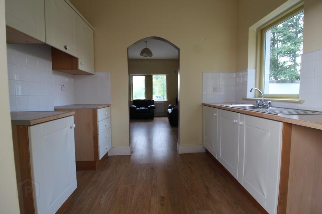 - Entrance hall with built-in presses and loft hatch - Double bedroom with a view to the front - Double bedroom with a view to the rear - Bathroom with toilet, wash hand basin and flush fit shower tray with electric shower - Dual aspect sitting room with open fireplace - Kitchen with fitted units, view over side garden and door to rear garden - Rear boiler house