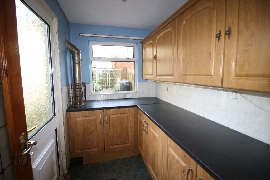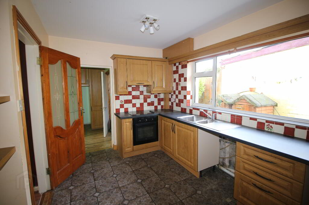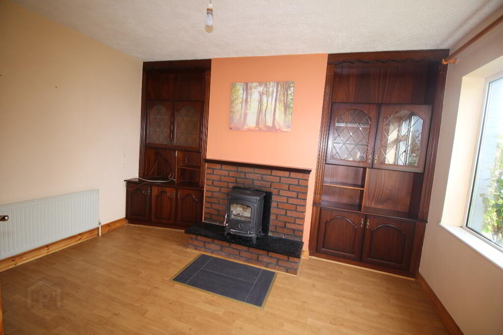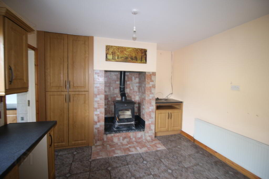 Kitchen/Dining Area 4.76 m x 3.46 m Fitted units, hot press, solid fuel stove with tiled surround, T.V counter, tiled floor