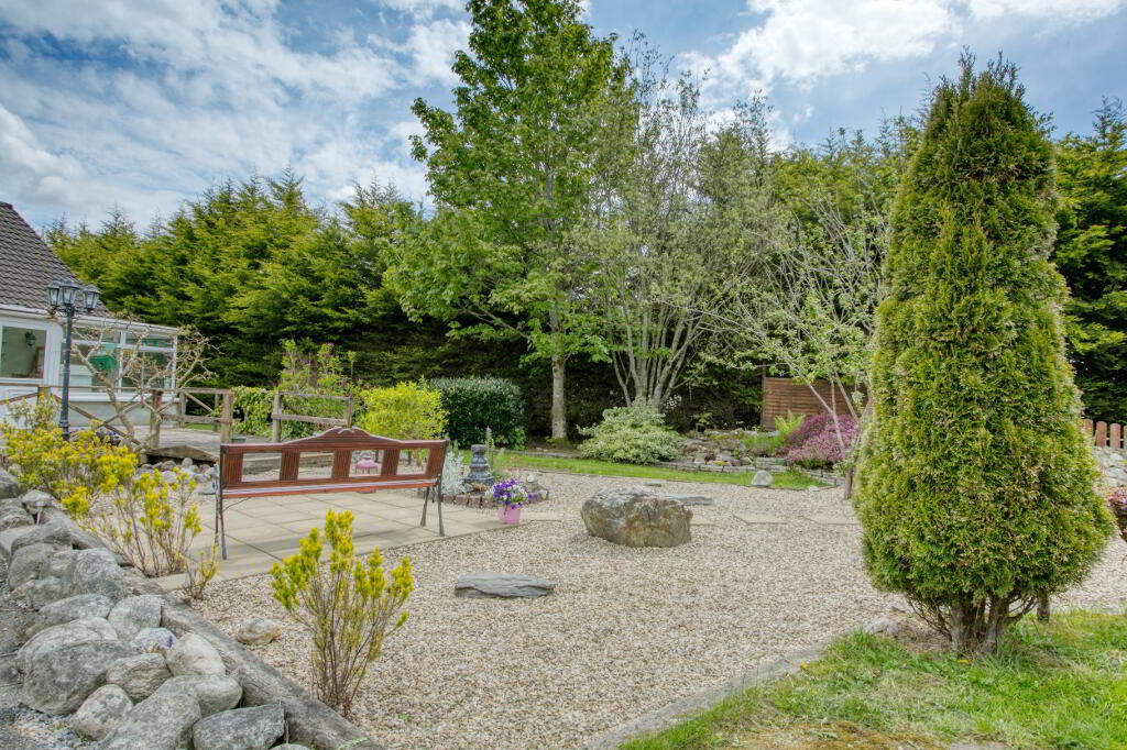 'Ferndale' is a bungalow styled, family home, standing on 0.66 acre of mature and manicured gardens, and complemented with a spacious workshop discretely placed a distance from the residence. Extended with a sun-drenched conservatory and including a very functional converted attic, the Residence is spacious and very well presented throughout. The well-proportioned Lounge overlooks the front gardens while the open-plan Kitchen and Living area connects directly into the Conservatory, capturing the afternoon and evening sun while looking onto the manicured private rear gardens.