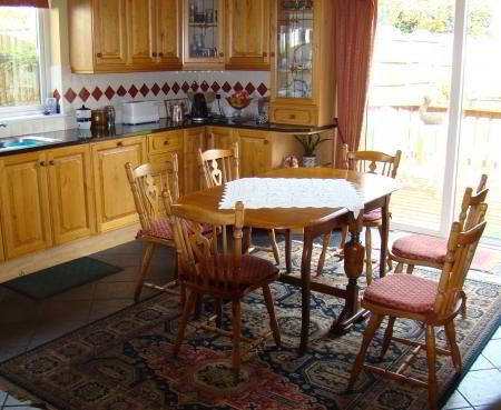 Kitchen 4.60m x 4.60m '' tiled floor '' double doors to garden and utility off.