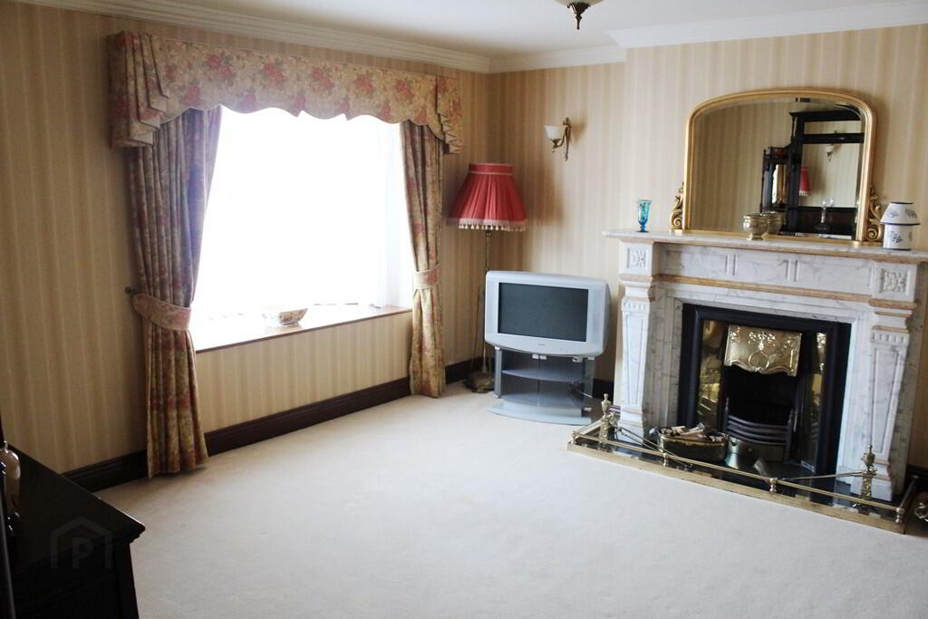 Feature bay window to front. Stunning marble fireplace with granite hearth and brass chimney cover over open fire. Coving and ceiling rose with ceiling light. Two wall lights, carpet and radiator.
