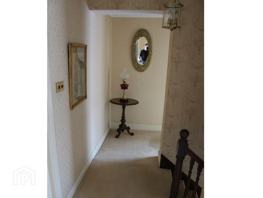 Two ceiling lamps, carpet, loft hatch and stira staircase, coving to ceiling. Large walk in hot press with immersion heater.