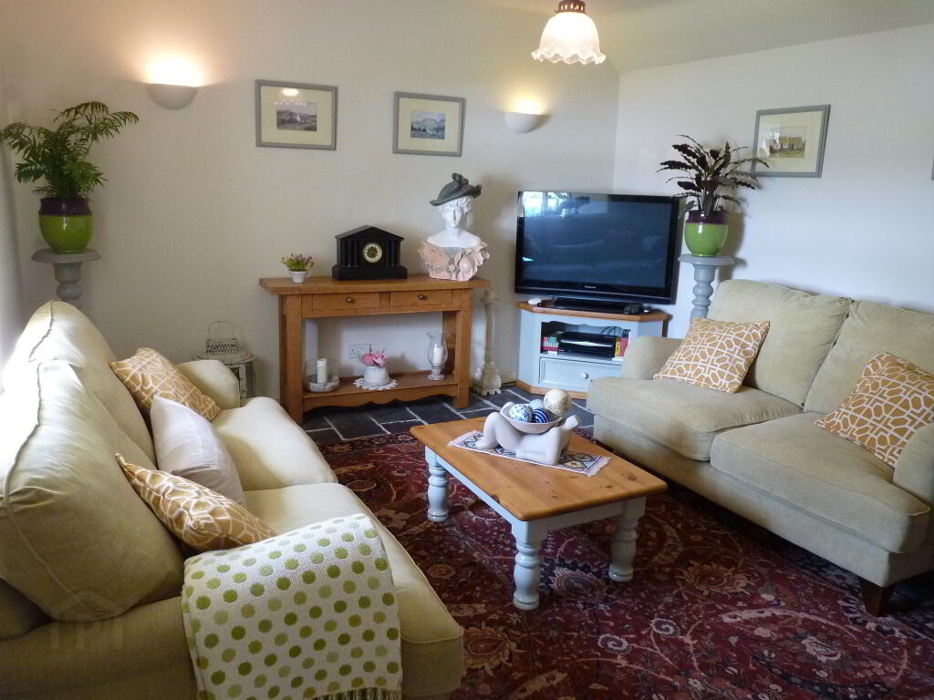 The cottage has a lovely timber storm porch with internal benches over-looking the lake with a double glazed UPVC stable door leading into a lovely kitchen/dining room with newly installed fully fitted kitchen. The kitchen has a water filter and its own tap. There is an integral washing machine, and fridge and freezer. There is an old style whitewashed fireplace and log buner. With the stable door open you can look out at the lake whilst having lunch!