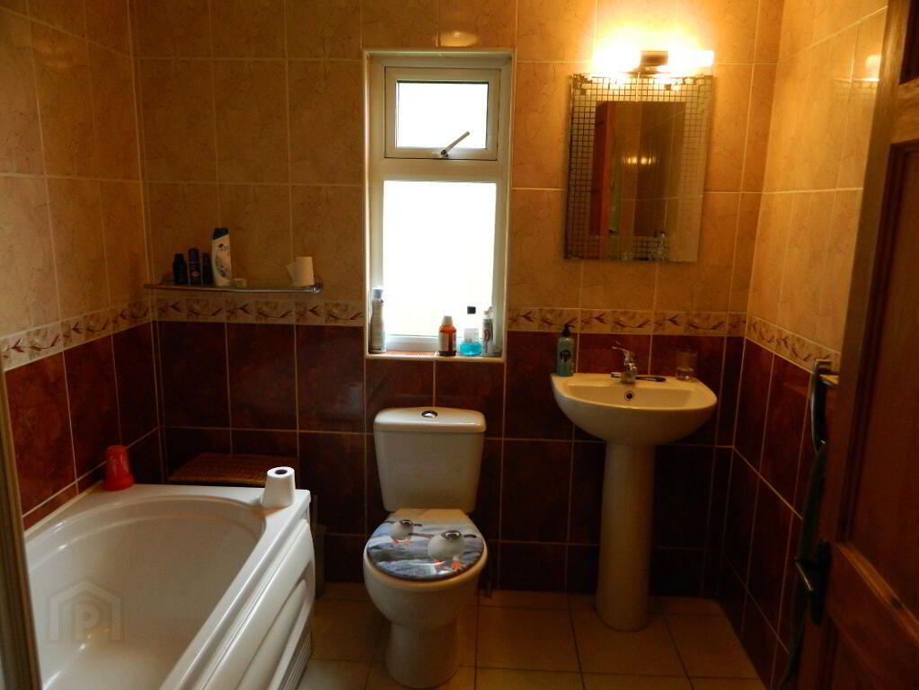 Fully tiled, bath with overhead Mira electric shower, bath screen, w.c., w.h.b., window, radiator.