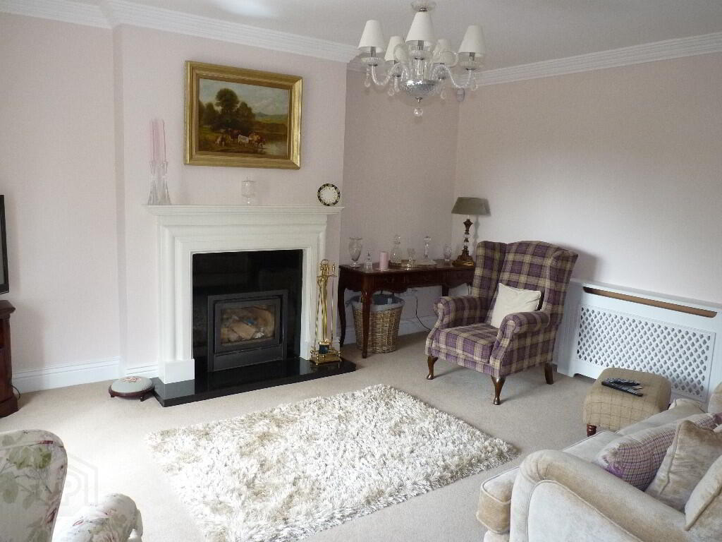 Bay window to front elevation with window seat and built in storage, classic feature fireplace with built in energy efficient stove. Granite hearth and insert. Plaster ceiling rose and coving to ceiling. Carpet, radiator with attractive cover.