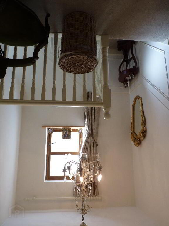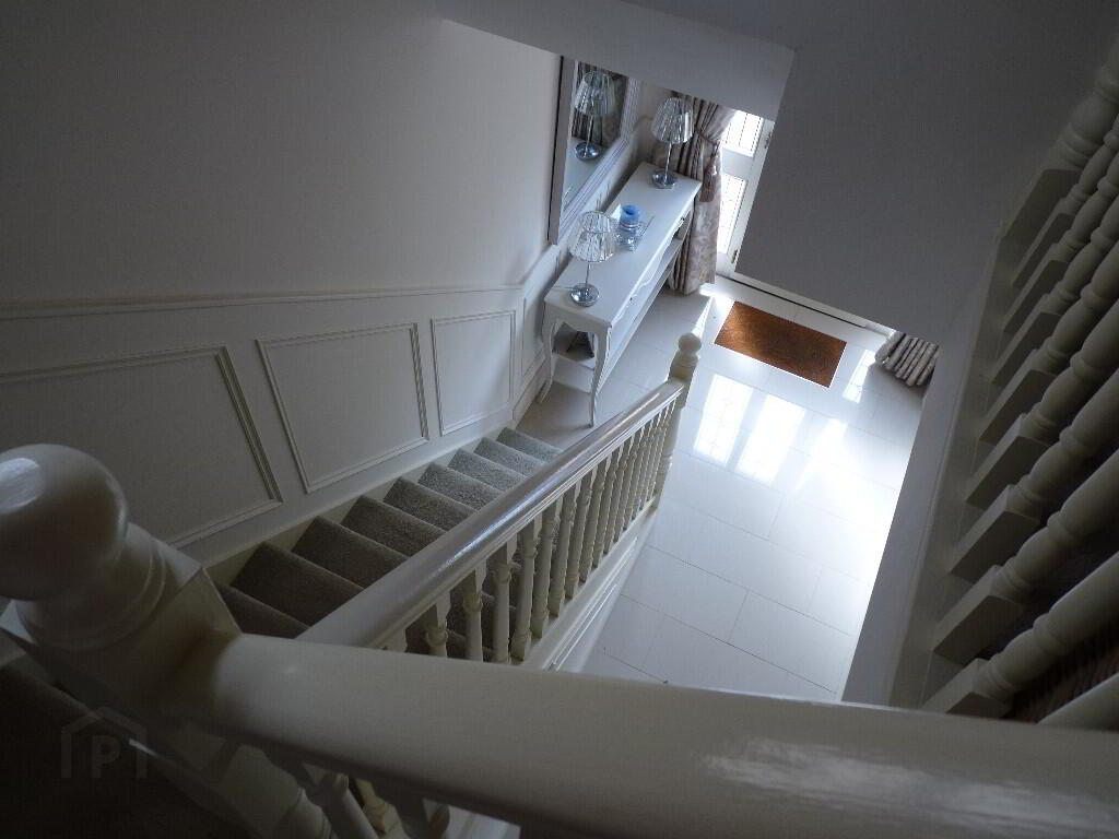 Accessed via half glazed front door with two glass side panels with attractive leaded glass. Polished porcelain floor tiles. Classic half panelled walls, recessed spot lighting, radiator with attractive cover, smoke alarm, under stairs cabinet, staircase with stairs and carpet, security alarm sensor.