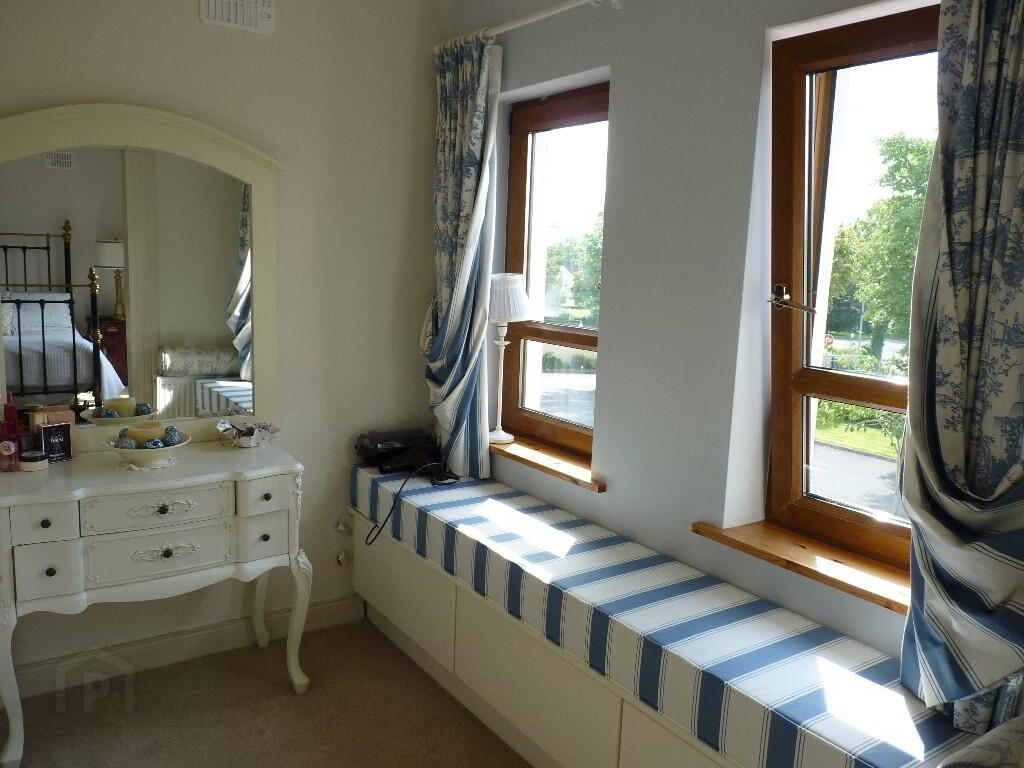 Two windows to front elevation overlooking the River Shannon. Window seat. Wall of floor to ceiling modern fitted wardrobes. Carpet. Wall Mirror.