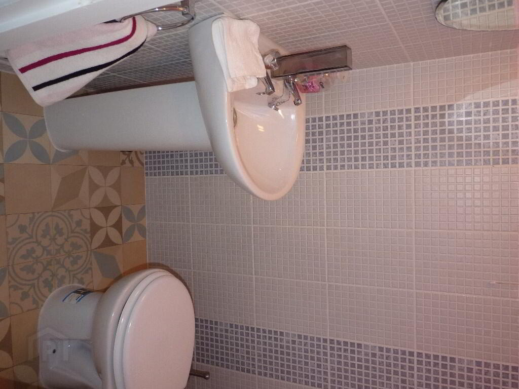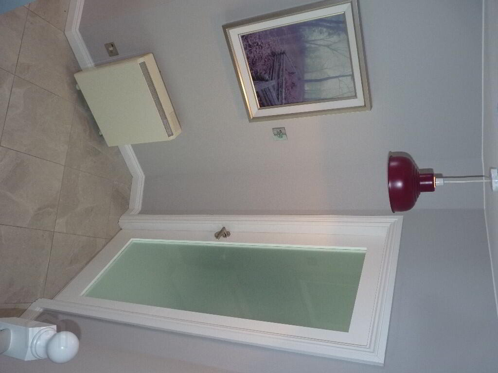 Three quarter mosaic design tiled walls, complimentary lino on floor, w.c., w.h.b., wall heater, wall light and shaver point, extractor fan.
