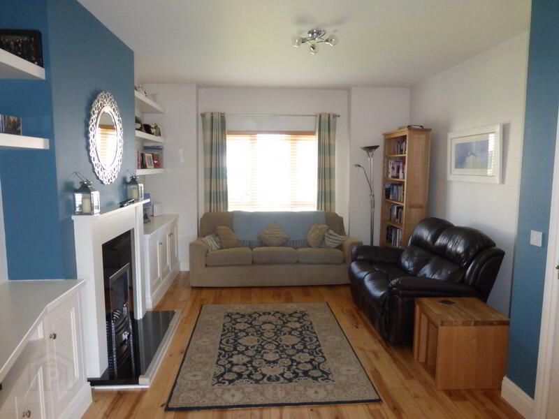 This is a stunning house, located within a quiet cul-de-sac, in this popular estate. Clonkil is ideally located within a short walk to the town center and all of the towns amenities. This house has been decorated and maintained to an exceptional standard. The living room has a solid timber floor, gas fireplace with attractive, built-in presses and shelves on either side. Double doors lead to the spacious kitchen/dining area where there is a tiled floor, patio door to the garden and a fully fitted kitchen. The kitchen includes an integrated oven, hob and dishwasher, while the adjoining utility has a larder press and is plumbed for the washing machine and dryer.