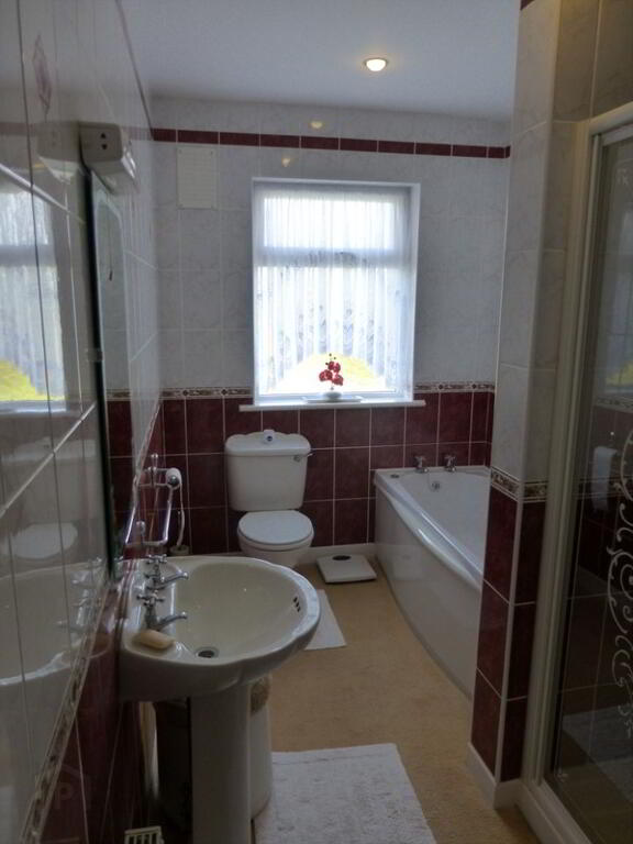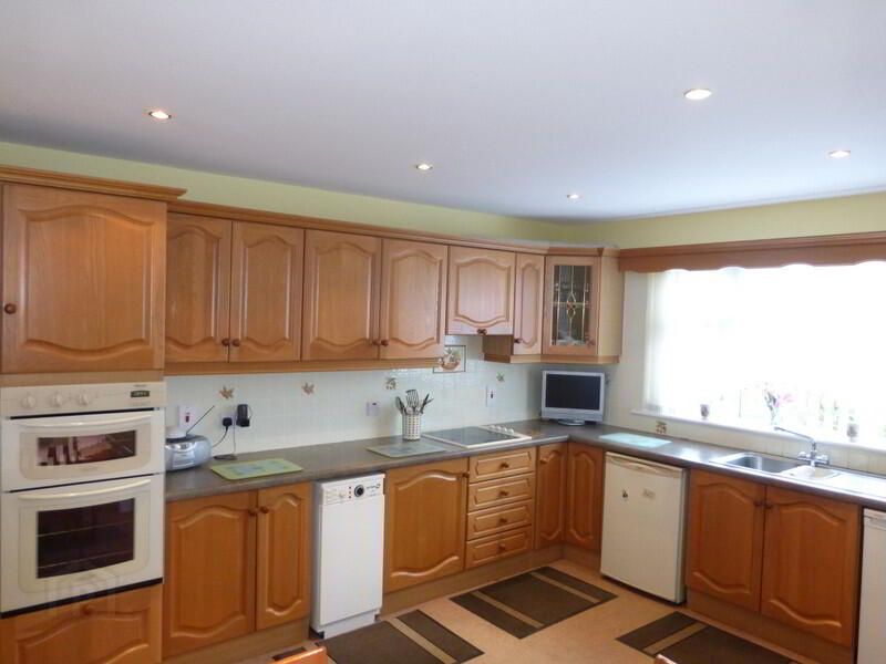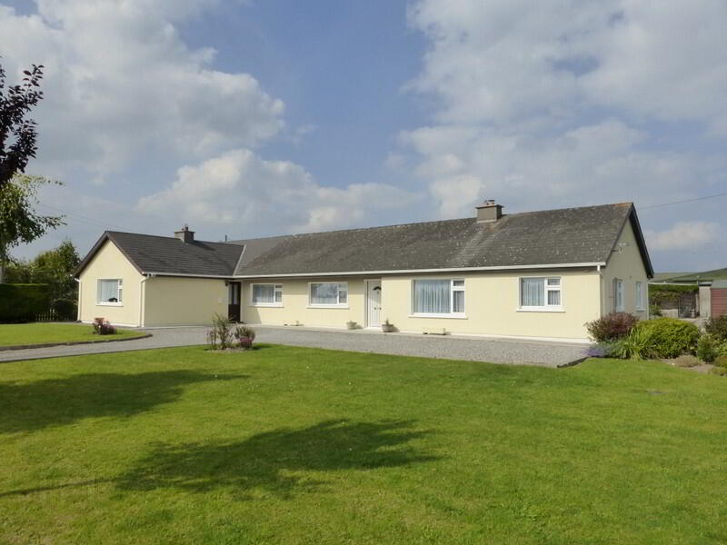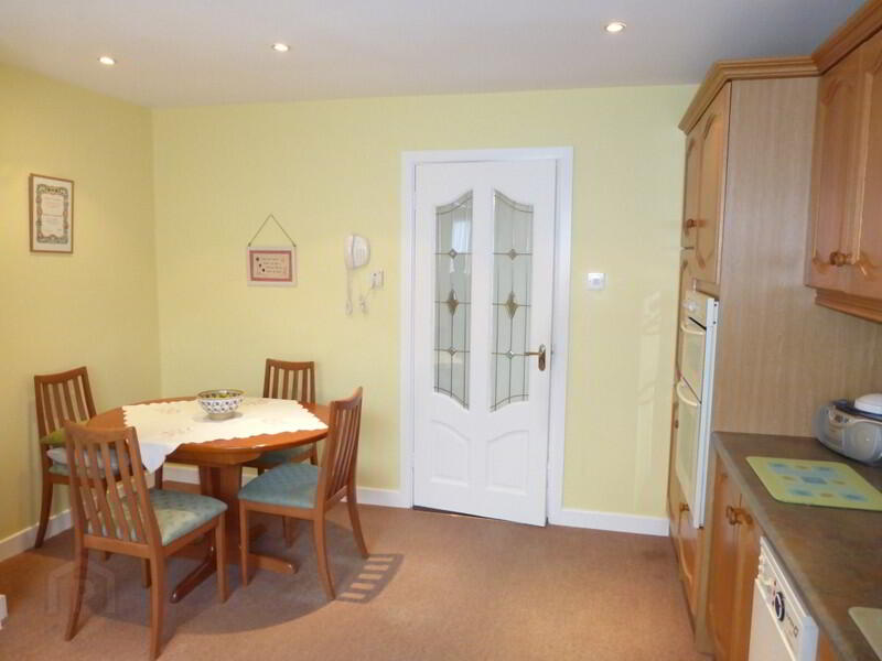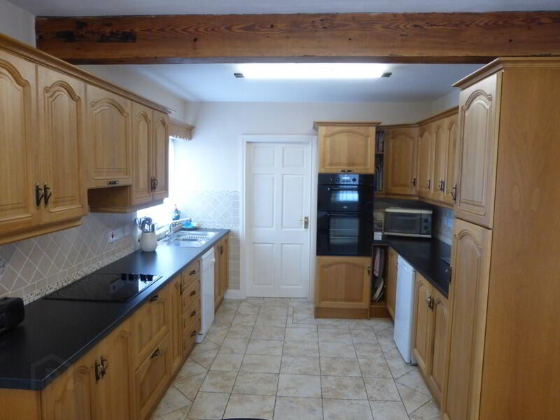 The property is in wonderful condition throughout and the gardens to the front and rear have been maintained to an exceptional standard. The main house is well laid out and has two spacious reception rooms, both are accessed through modern semi-glazed doors. The first room, to the front of the house has a super 'Blacksmith' insert stove, set into an attractive marble and granite fireplace. The second reception room is very spacious and is connected to the kitchen / dining area. There is a large 'Arrow' stove and it is also set into an attractive fireplace. The kitchen/dining area has a modern feel with solid timber units, good work surface and integrated oven and hob. The utility is located off the kitchen and is plumbed for a washing machine and dryer. There are four bedrooms, all will accommodate a double bed and three have built in wardrobes. The bathroom has recently been renovated to a high standard and there is a stylish deep bath, wc, whb and hotpress. There are elegant black and white tiles on the floor and walls. The property is heated by the OFCH system.