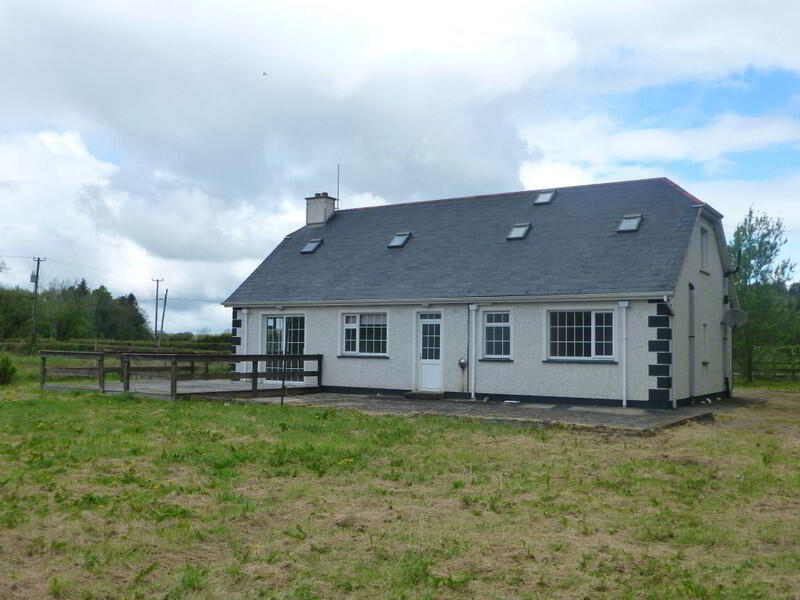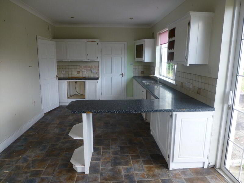 Description Spacious, six bedroom house, located just c.2 miles from the town centre. This dormer bungalow measures c1,900 sq.ft and sits on a c0.5 acre site. Within the house is a good sized living room, with timber floor and open fireplace. The spacious kitchen / dining area is located at the rear of the house and also has an open fireplace which would be ideal for a wood burning stove. From the dining area, sliding doors lead to the deck area and the utility is located off the kitchen. There are three bedrooms on the ground floor as well as the bathroom and hotpress. On the first floor, there are three more bedrooms. Five of the six bedrooms have ensuite facilities. To the rear of the house is a large workshop/shed. There are some internal works which require immediate attention, however, the property is in good condition overall.