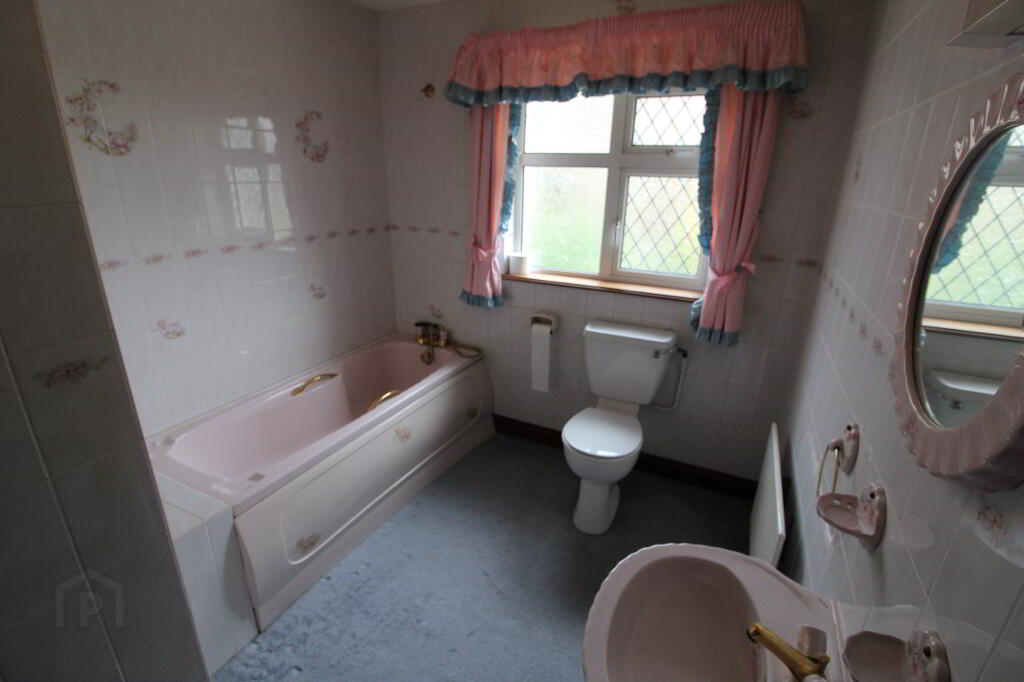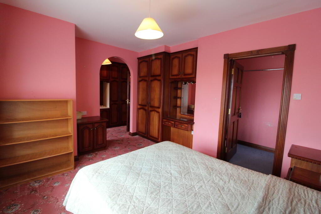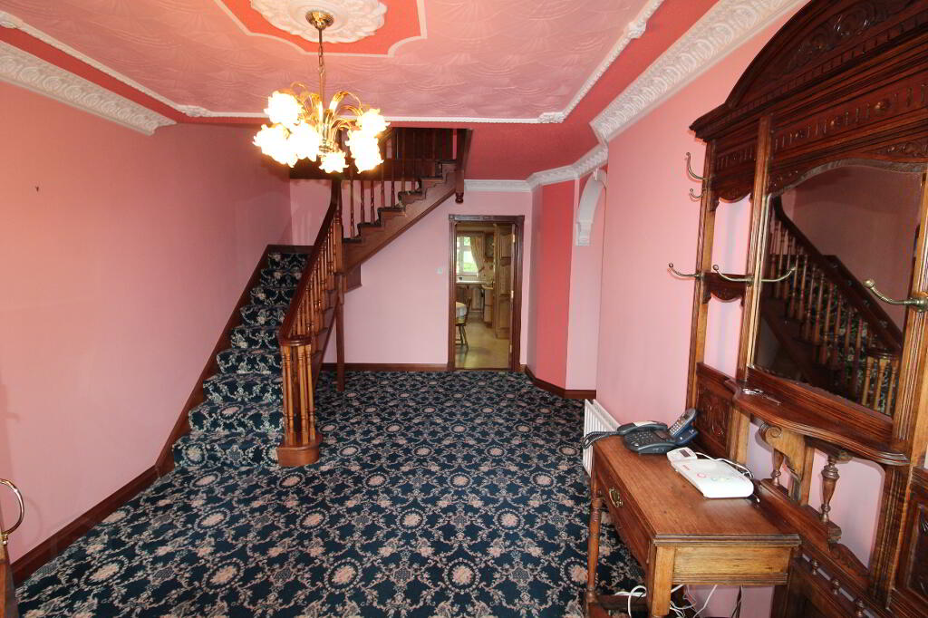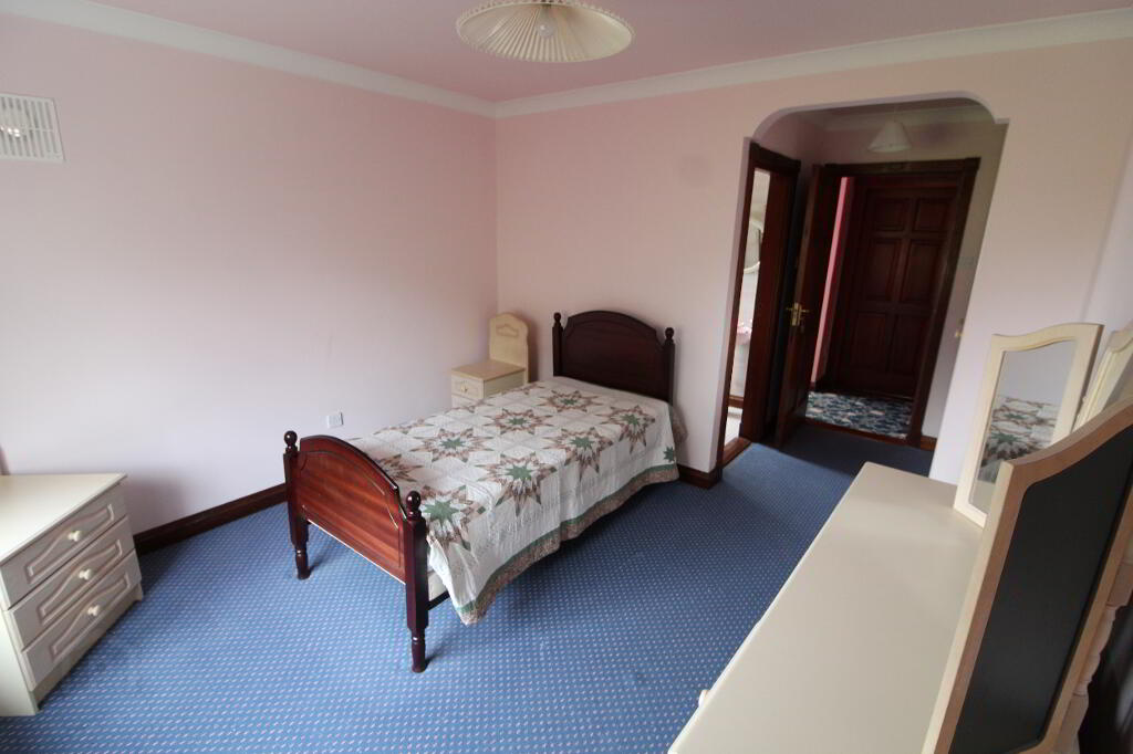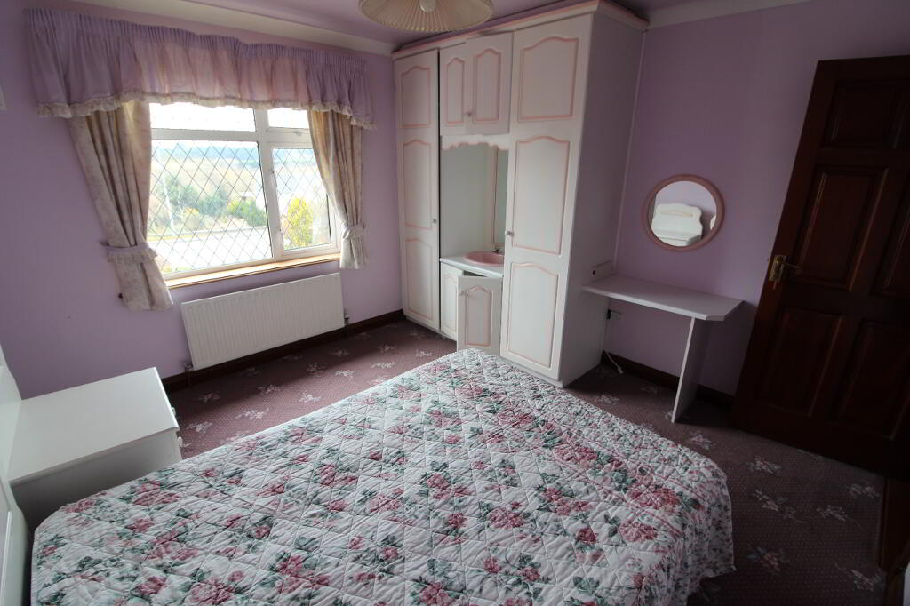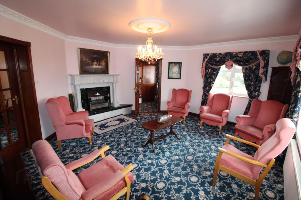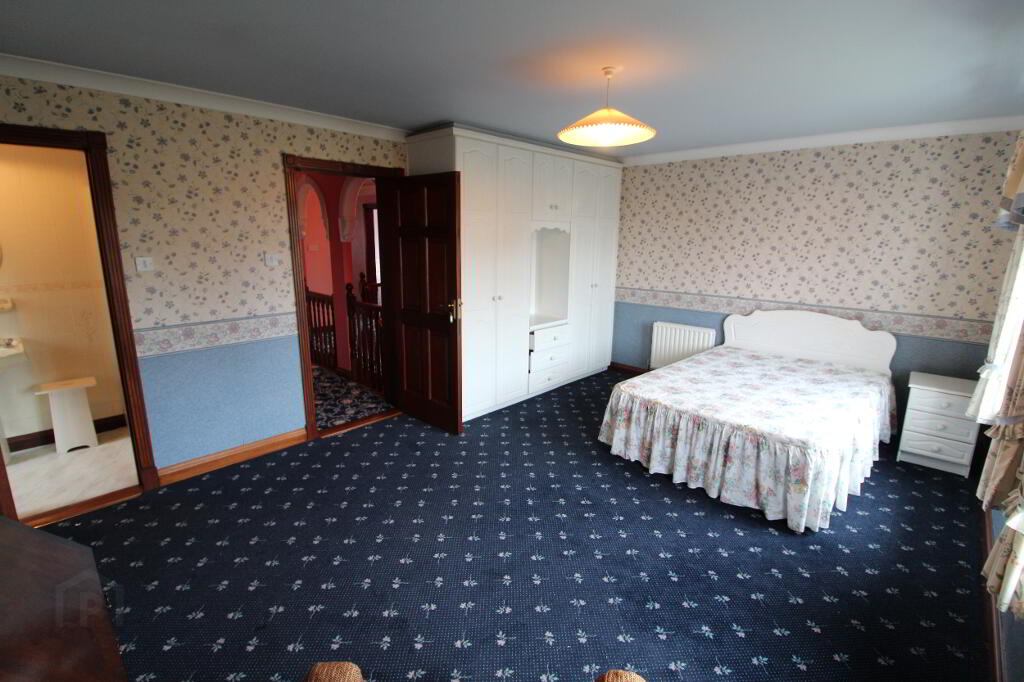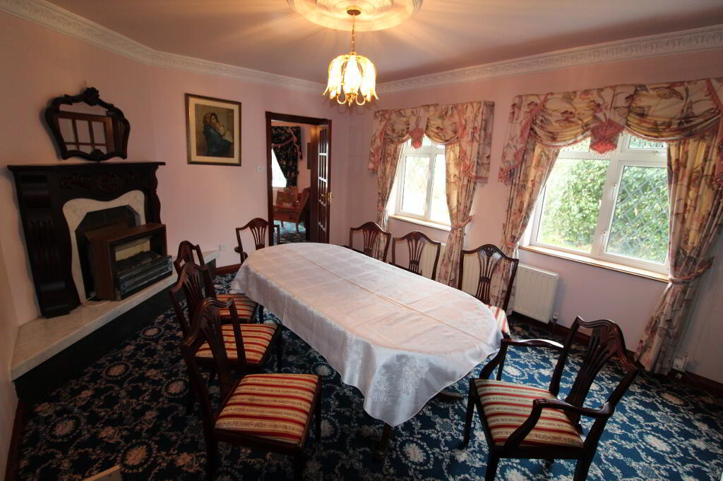 Drumeagle is a large detached dwelling on an elevated sight within 500m of Knock Basillica. The property is situate on a landscaped site extending to more than 0.5 acre and includes a chalet. The property comprises a two storey dwelling extending to 335 sq.m. (3,600 sq.ft.). At Ground floor level the property accommodates Entrance Hall, W.C., Bedroom suite 1 (en-suite), Hot press, Snooker room, Kitchen/Dining Room, Utility, Dining Room (with open fire) and sitting room (with open fire). AT first floor level there is a bathroom, Airing Cupboard and 6 bedrooms (4 en-suite). The property has the benefit of separate external fire escape and attic stairs to a floored attic space.