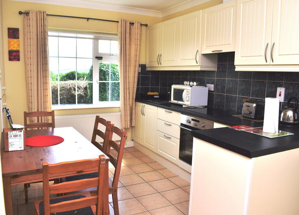 Kitchen: 4.40m x 2.70m Beautifully bright with a southerly aspect. Views over Slaney Valley and of the Wicklow Hills. Fitted Units complete with integrated appliances and Breakfast bar. Finished with Tile flooring.