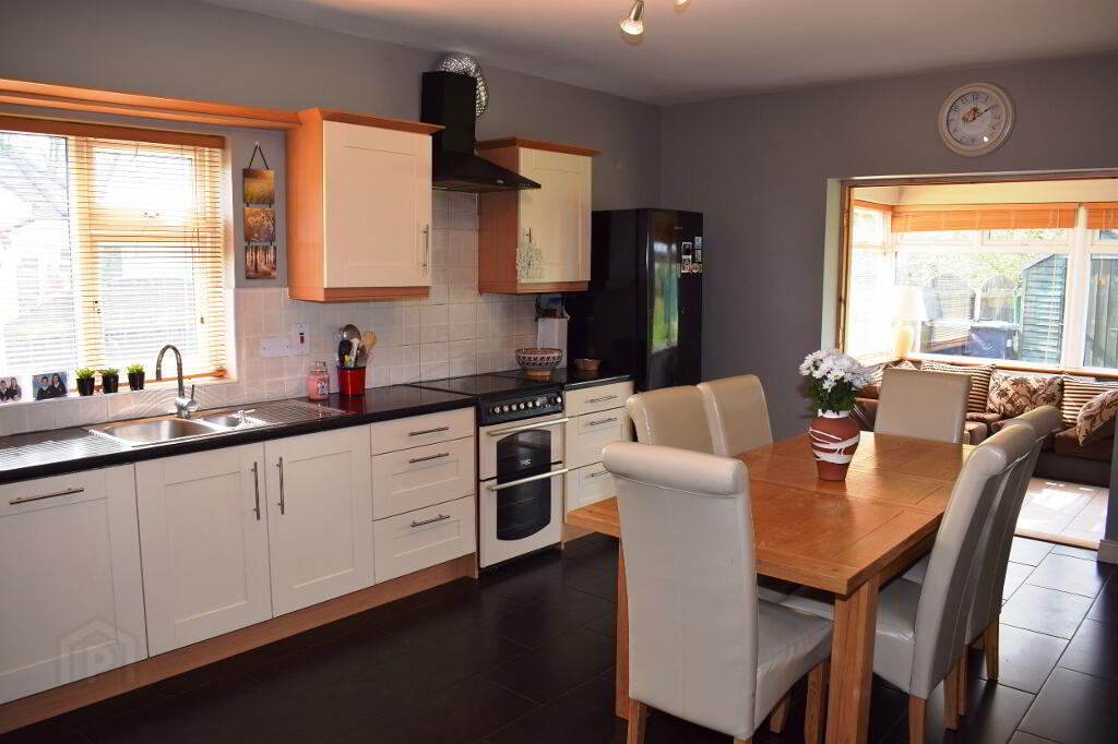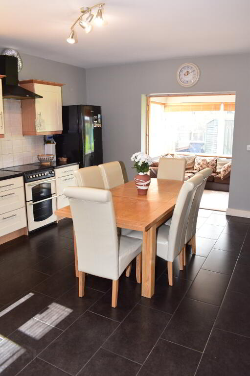 Kitchen: (5.35m x 3.85m) Combined Kitchen and Family Dining area complete with an extensive range of fitted units and appliances. Tiled Flooring and inter-connecting access to the Sun Lounge.