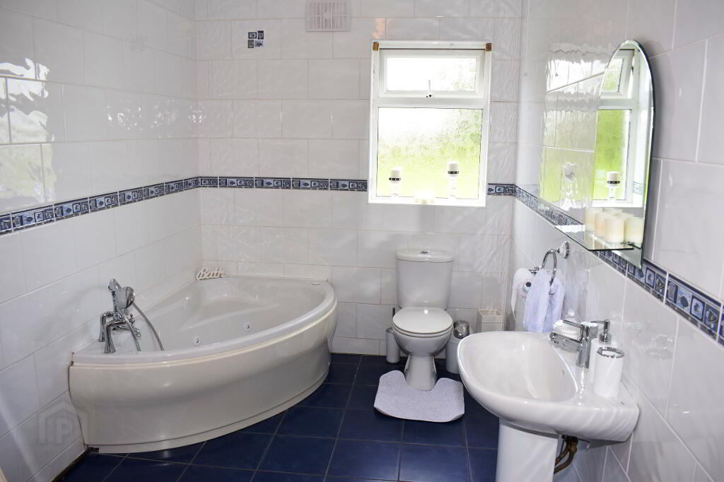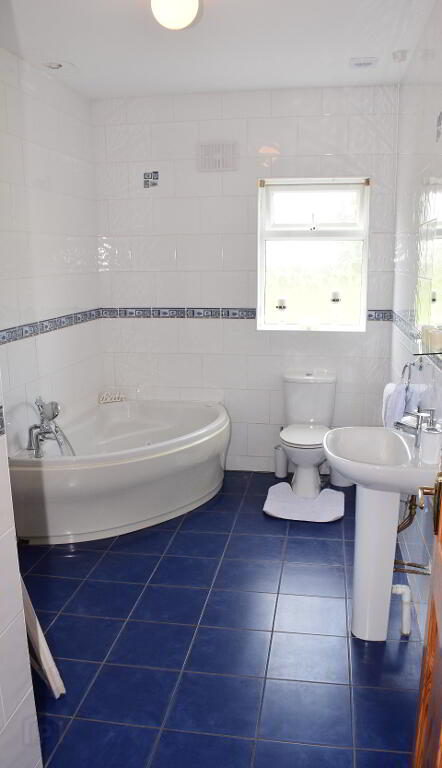 Bathroom: (3.75m x 2.90m) Fabulous sized main Bathroom with corner Jacuzzi Bath, Toilet and WHB. Finished with full tiling to the floor.
