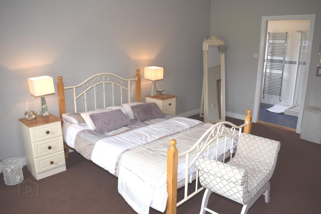 Bedroom 1: (5.10m x 4.85m) Large double Bedroom with walk-in Wardrobe and fully fitted En Suite. Walk-in Wardrobe is shelved out to maximise storage use. En Suite: Fitted with Shower cubicle, Toilet and WHB, and finished with full tiling to floor and walls.
