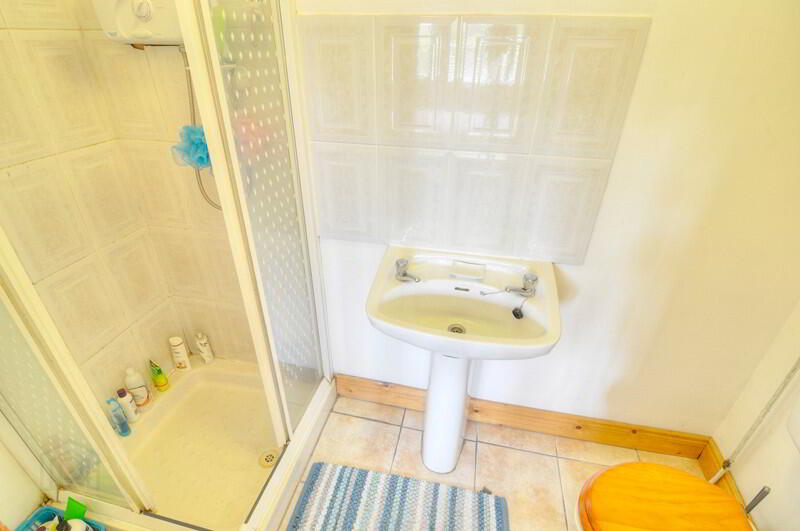 BATHROOM: (5 sq. m) Spacious and finished with partially tiled walls and fitted with Bath, W.H.B, and W.C.