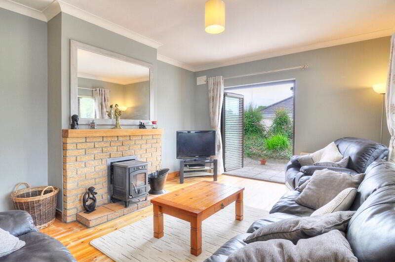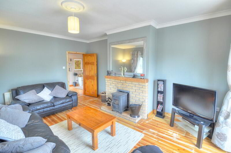 LOUNGE (4.858m x 4.239m) A very well proportioned living area with feature fireplace and free-standing stove. Overlooking the front gardens.