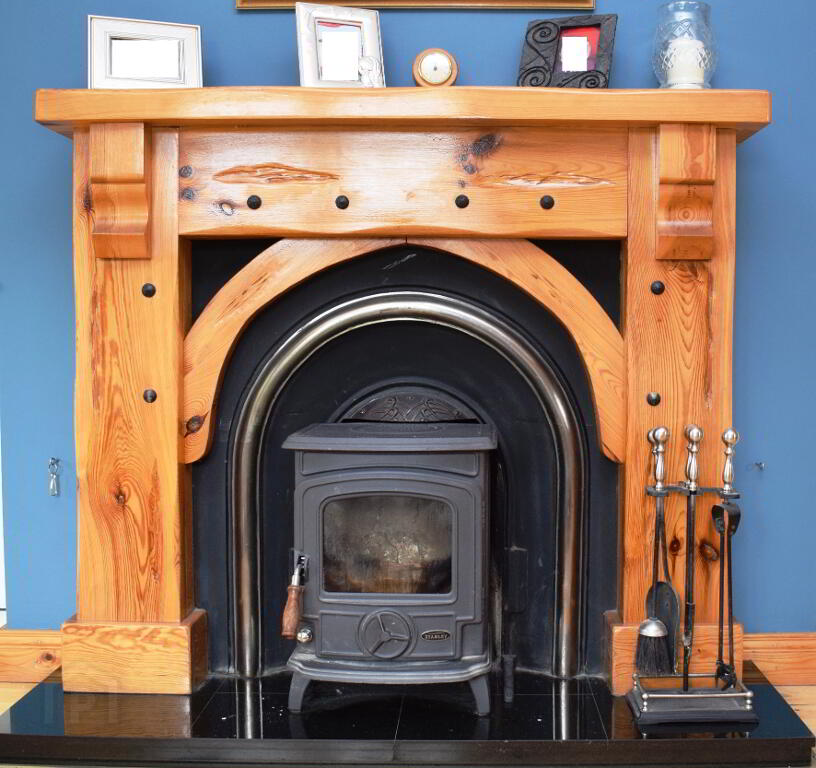 Living Room: 5.00m x 4.75m Spacious and airy. Connecting directly to the large Kitchen/Dining area. French doors to the sun-drenched south-facing gable area and attractive bay-window catching the evening sun. Finished with quality timber flooring. Feature Fireplace with solid-fuel stove. Fitted storage shelving.