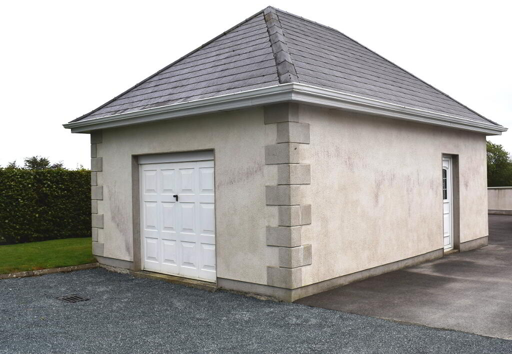 Detached Garage 35 sq.m Fully wired and suitable for outside offices if required. Front garage door and side pedestrian door access.