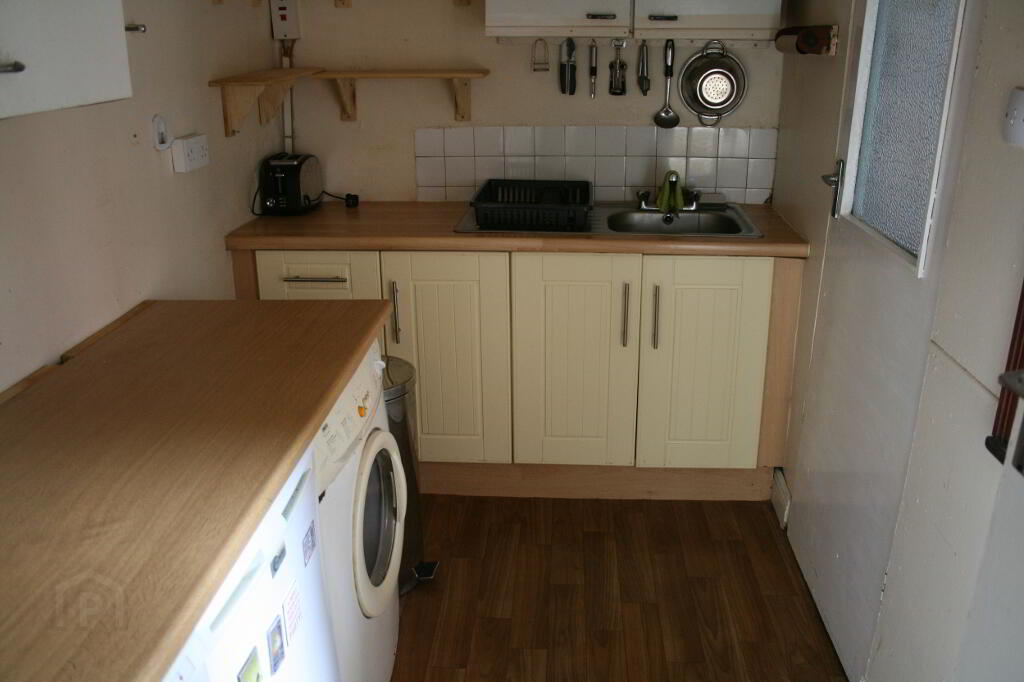 KITCHEN 9’7” X 6’0” Vinyl Floor, Wall & Floor Units, Plumbed For Washing Machine, Cooker Point, Power Points.