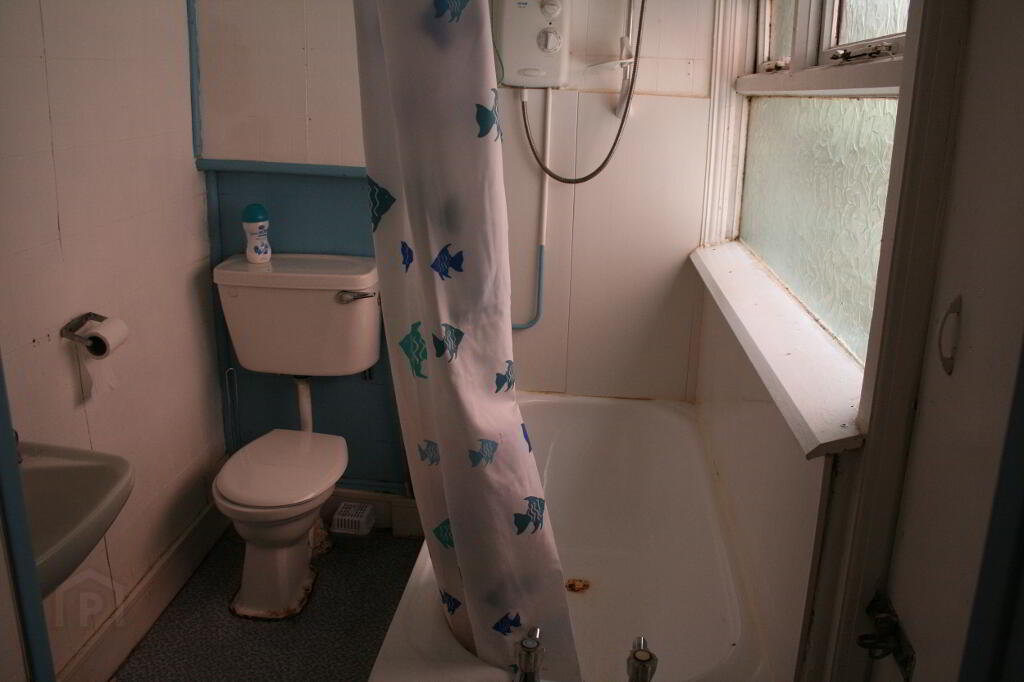 BATHROOM 5’10” X 5’2” Vinyl Floor, Radiator, W.C., W.H.B., Bath With Electric Shower.