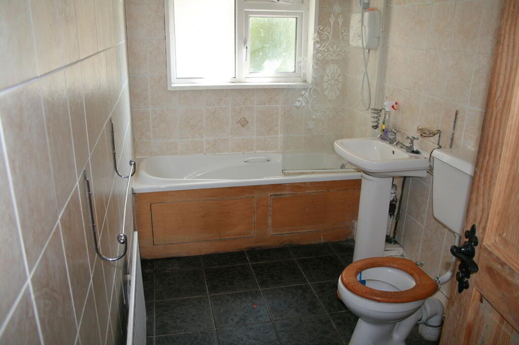 Ceramic Tiled Floor, W.C., W.H.B., Bath With Electric Shower, Radiator, Fully Tiled.