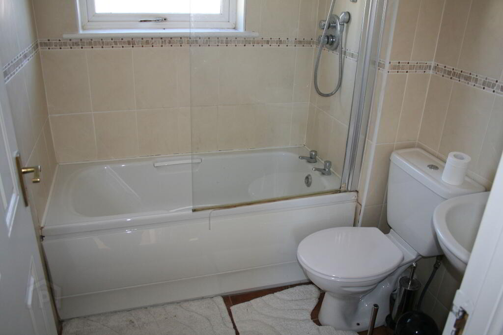 Ceramic Tiled Floor, W.C., W.H.B., Radiator, Bath with Shower, Fully Tiled.