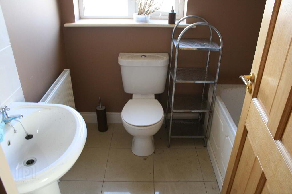 Ceramic Floor, Radiator, W.C., W.H.B., Bath, Shower In Bath, Part Tiled.
