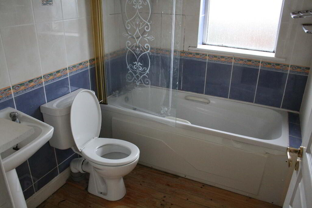 Wood Floor, Radiator, W.C., W.H.B., Bath, Electric Shower, Part Tiled.