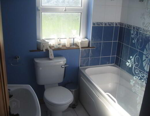 Ceramic Floor, Radiator, W.C., W.H.B., Bath, Electric Shower, Part Tiled.